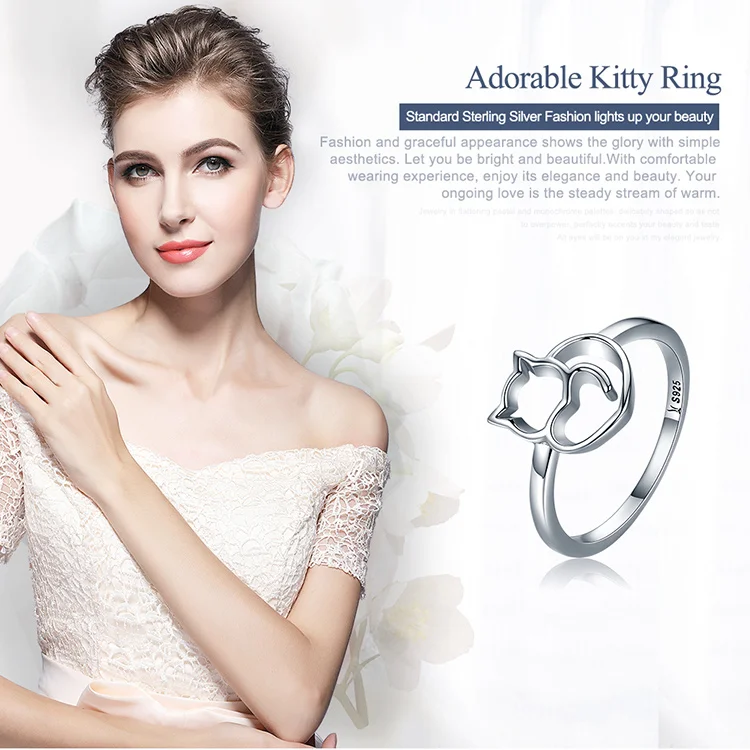 925 Sterling Silver Fashion Cute Cat Animal Earrings Rings Women Jewelry Sets Wedding Silver Jewelry - PeticaDeals